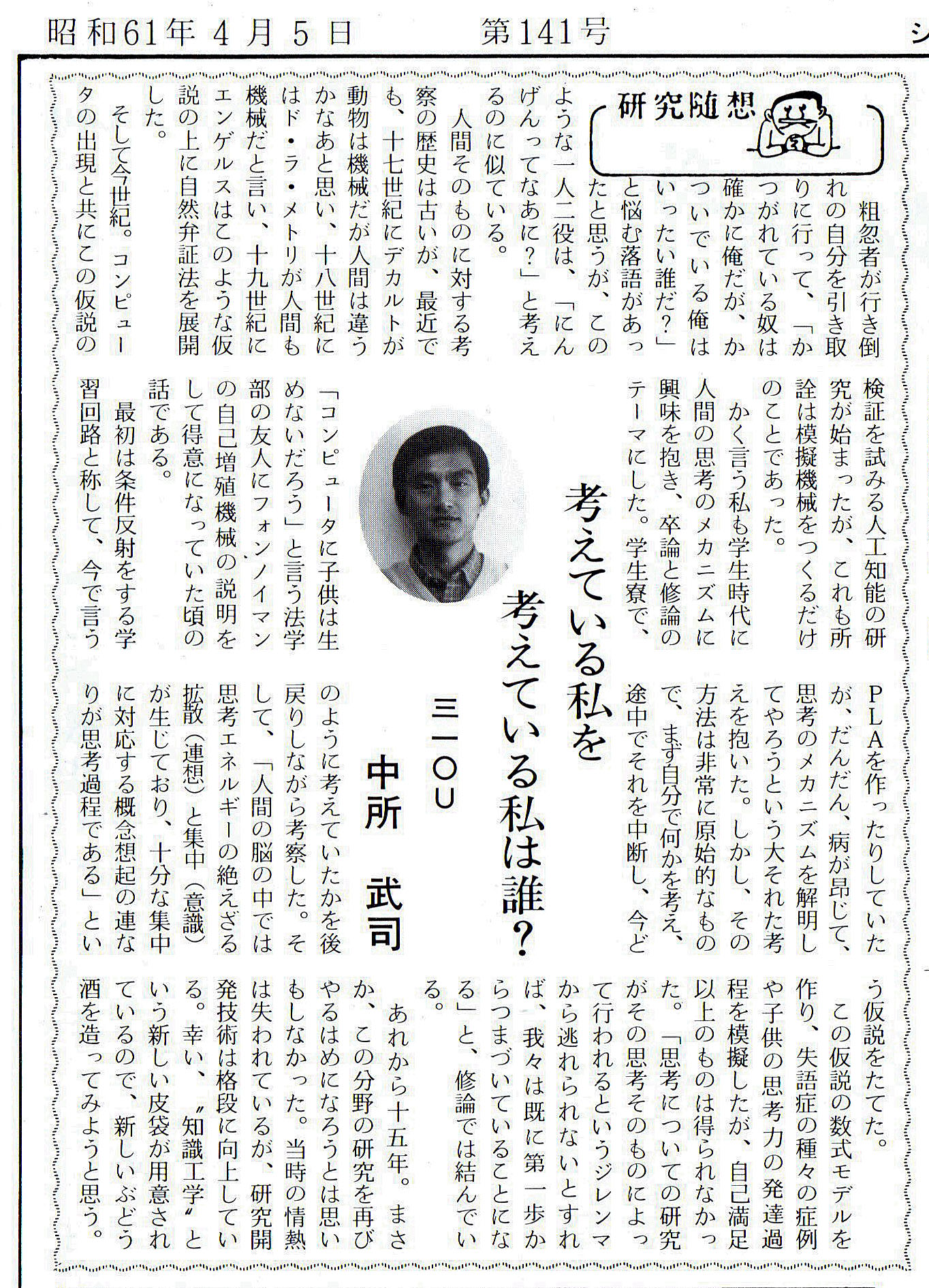 | 1986.4 | ■研究随想「考えている私を考えている私は誰?」 |